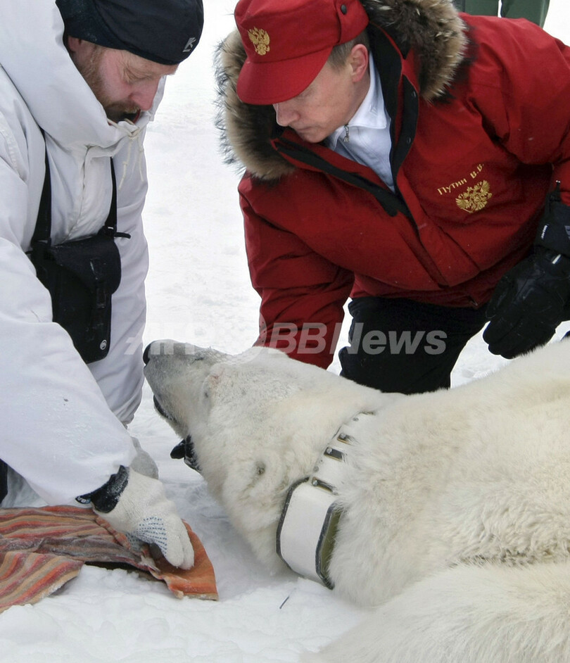 「タフガイ」プーチン首相、ホッキョクグマの調査を手助け