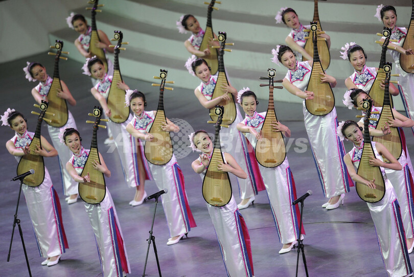 30日夜に開かれた開幕式には、胡錦濤(Hu Jintao)国家主席のほか、フランスのニコラ・サルコジ(Nicolas Sarkozy)大統領や韓国の李明博(イ・ミョンバク、Lee Myung-Bak)大統領など20か国の首脳が出席。テノール歌手のアンドレア・ボチェッリ(Andrea Bocelli)さんや映画俳優のジャッキー・チェン(Jackie Chan)さんらも登場した。(c)AFP