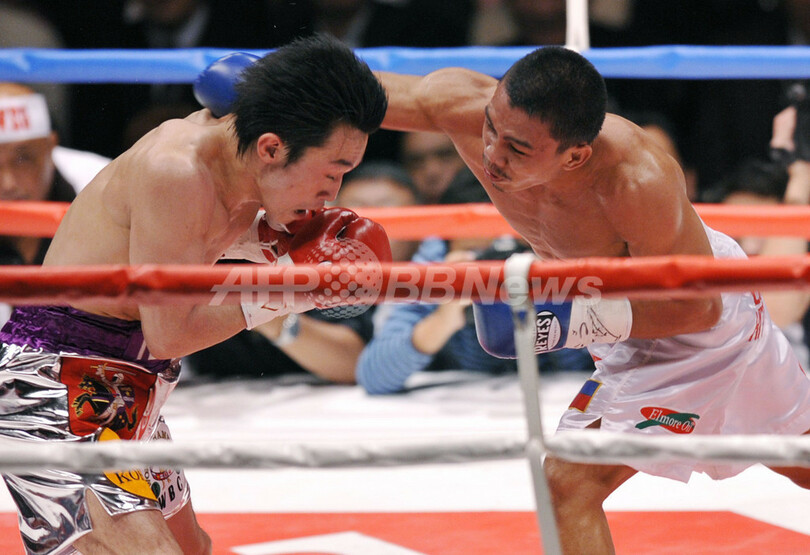 一方、同時に行われたWBC世界スーパーバンタム級タイトルマッチでは、王者の西岡利晃(Toshiaki Nishioka、日本)が、挑戦者バルウェグ・バンゴヤン(Balweg Bangoyan、フィリピン)を5回1分14秒TKOで下し、4度目の防衛に成功した。(c)AFP
