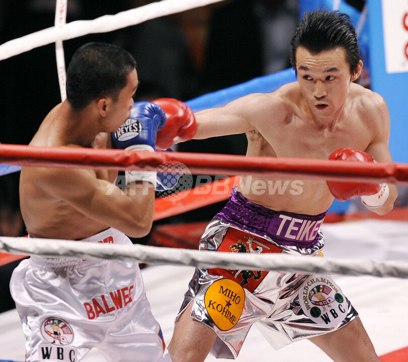一方、同時に行われたWBC世界スーパーバンタム級タイトルマッチでは、王者の西岡利晃(Toshiaki Nishioka、日本)が、挑戦者バルウェグ・バンゴヤン(Balweg Bangoyan、フィリピン)を5回1分14秒TKOで下し、4度目の防衛に成功した。(c)AFP