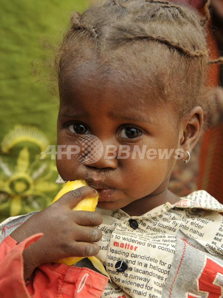 写真は、ニジェールのDalyでマンゴーを食べる少女(2010年4月27日撮影)。(c)AFP/SIA KAMBOU