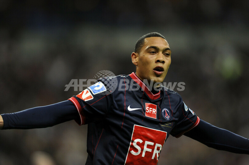 サッカー・フランス杯2009-10(%%French League Cup 2009-10%%)決勝が1日、サン・ドニのスタッド・ド・フランス(Stade de France)で行われ、パリ・サンジェルマン(%%Paris Saint-Germain%%)が延長戦の末1-0でASモナコ(%%AS Monaco%%)に勝利し、8度目の優勝を果たした。写真は延長前半15分に得点を決めて喜ぶパリ・サンジェルマンのギヨーム・オアロ(%%Guillaume Hoarau%%)。(c)AFP/FRANCK FIFE