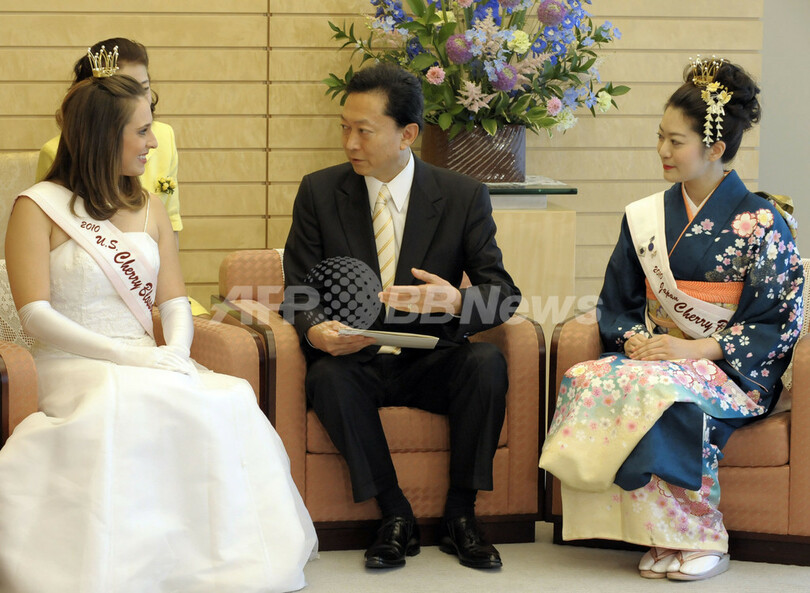 ニュース 政治・経済 日米さくらの女王、鳩山首相を表敬訪問 2010年5月8日 11:30 発信地:東京 [ アジア・オセアニア 東京 ] このニュースをシェア ‹ › ❮ 2/4 ❯ 都内の首相官邸で全米さくらの女王マーゴ・フェフェリー(Margot Pfefferle)さん(左)と日本さくらの女王大野可那子(Kanako Ono)さん(右)の表敬訪問を受け、フェフェリーさんと歓談する鳩山首相(2010年5月6日撮影)。(c)AFP/TOSHIFUMI KITAMURA 画像作成中 ! 【5月8日 AFP】鳩山由紀夫(Yukio Hatoyama)首相は都内の首相官邸で6日、全米さくらの女王マーゴ・フェフェリー(Margot Pfefferle)さんと日本さくらの女王大野可那子(Kanako Ono)さんの表敬訪問を受けた。(c)AFP 政治・経済 一覧へ> メディア・報道関係・法人の方向け 写真・動画 購入のお問合せ>