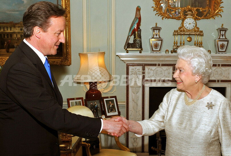 【5月12日 AFP】英総選挙で第1党となった保守党のデービッド・キャメロン(David Cameron)党首は11日、ゴードン・ブラウン(Gordon Brown)首相の辞任を受け、エリザベス女王(Queen Elizabeth II)から新首相に任命された。キャメロン新首相は、「強く安定した」連立政権をつくると宣言した。