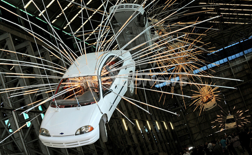 写真は、米ニューヨーク(New York)を拠点に活動する中国人芸術家、蔡國強(Cai Guo-Qiang)氏の作品「インオポチューン:ステージ・ワン(Inopportune:Stage One)」(2004)(2010年5月11日撮影)。(c)AFP/Greg WOOD