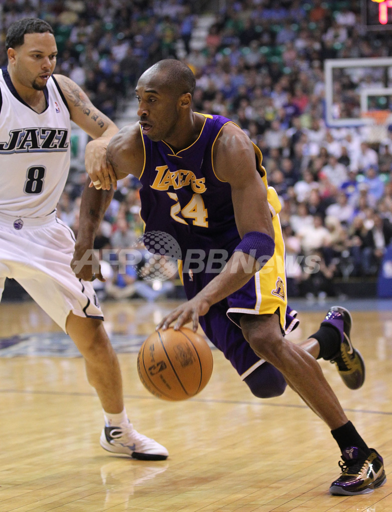 【5月12日 AFP】09-10NBA西カンファレンスプレーオフ準決勝、ユタ・ジャズ(Utah Jazz)対ロサンゼルス・レイカーズ(Los Angeles Lakers)第4戦。レイカーズは111-96で勝利し、4連勝でカンファレンス決勝に進んだ。レイカーズの決勝進出は3年連続。