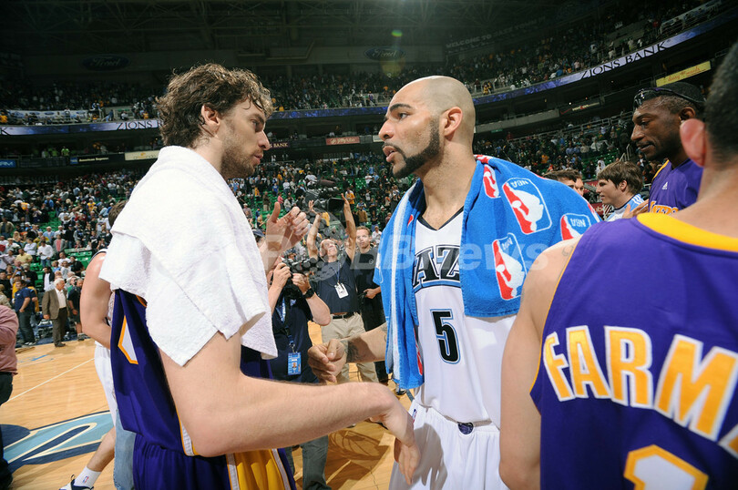 【5月12日 AFP】09-10NBA西カンファレンスプレーオフ準決勝、ユタ・ジャズ(Utah Jazz)対ロサンゼルス・レイカーズ(Los Angeles Lakers)第4戦。レイカーズは111-96で勝利し、4連勝でカンファレンス決勝に進んだ。レイカーズの決勝進出は3年連続。