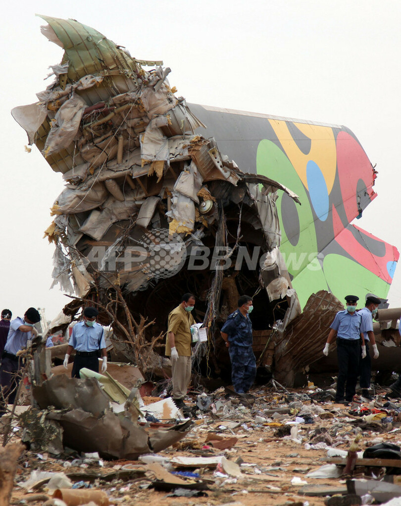 【5月12日 AFP】(一部更新、写真追加)リビアの首都トリポリ(Tripoli)の空港で12日午前6時(日本時間同日午後1時)ごろ、乗客乗員104人を乗せた南アフリカ・ヨハネスブルク(Johannesburg)からのアフリキーヤ・エアウェイズ (Afriqiyah Airways)のエアバス(Airbus)A330が着陸直前に墜落し、103人が死亡した。8歳のオランダ人の少年が唯一、生存者として発見された。