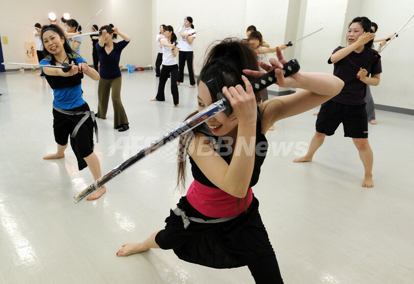 【5月13日 AFP】「刀」と言えば昔は侍が敵を切りつけるものだったが、現代ではぜい肉やストレスを「成敗」する「刀エクササイズ」なるものに使われている。