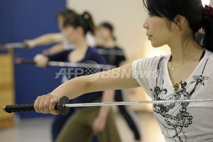 【5月13日 AFP】「刀」と言えば昔は侍が敵を切りつけるものだったが、現代ではぜい肉やストレスを「成敗」する「刀エクササイズ」なるものに使われている。