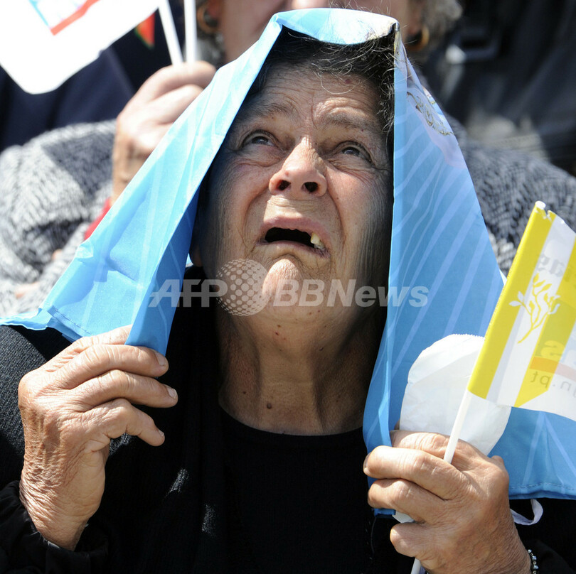【5月14日 AFP】 ローマ法王ベネディクト16世(Benedict XVI) は13日、ポルトガルのファティマ(Fatima)を訪れ、聖母マリア出現の93回目の記念日を祝うミサを行い、約50万人の信者が集まった。1917年、3人の羊飼いの子どもの前に聖母マリアが出現したとされるファティマは、現在では有名な巡礼地となっている。(c)AFP