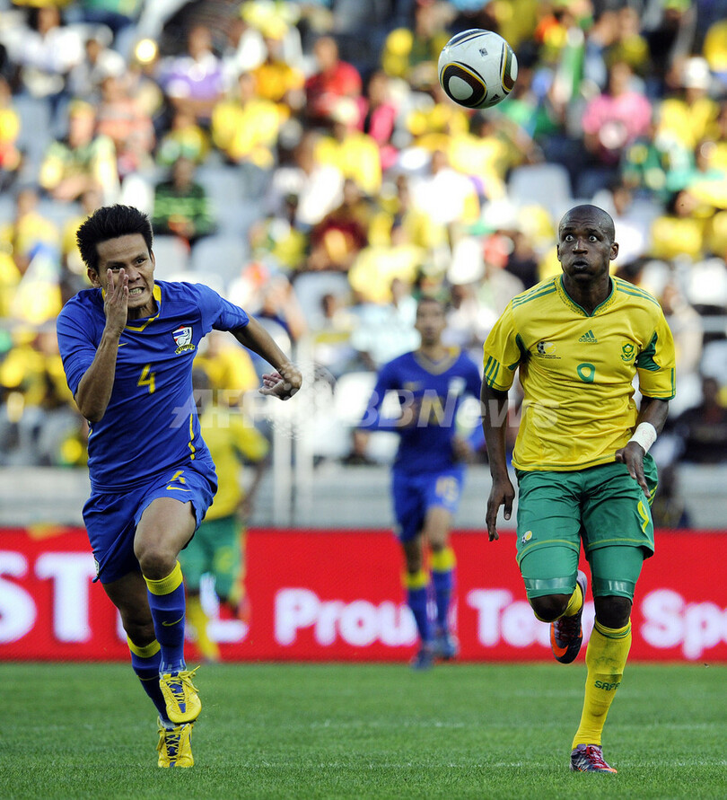 【5月17日 AFP】サッカー国際親善試合、南アフリカ対タイ。南アフリカは4-0で快勝した。