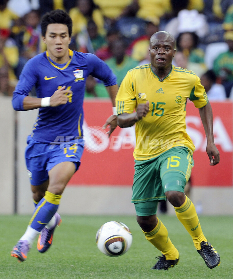 【5月17日 AFP】サッカー国際親善試合、南アフリカ対タイ。南アフリカは4-0で快勝した。