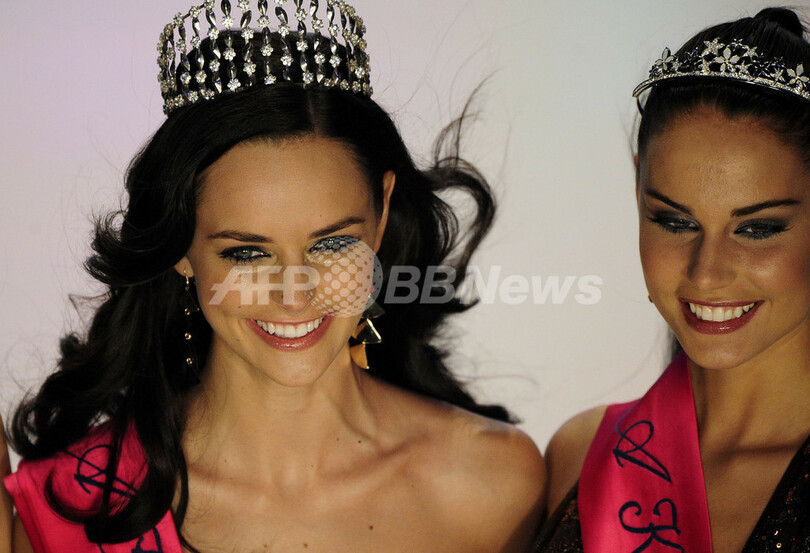 ハンガリー・ブダペスト(Budapest)で13日、ミス・ワールド(Miss World)とミス・ユニバース(Miss Universe)の合同代表選考会「クイーン(Queen)」が行われ、22歳の大学生、アグネス・ドボ(Agnes Dobo)さんがミス・ワールド・ハンガリー代表に選出された。ドボさんは、ベトナムで開催されるミス・ワールド世界大会に出場する。写真は、優勝したドボさん(左、2010年5月13日撮影)。(c)AFP/ATTILA KISBENEDEK