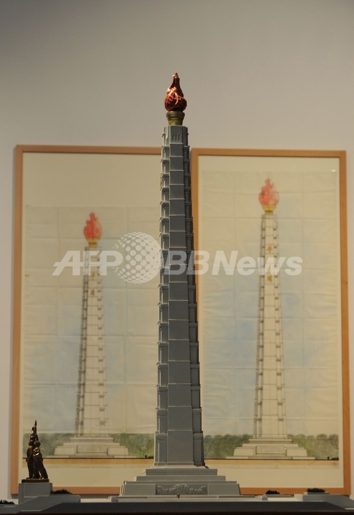 【5月19日 AFP】オーストリア・ウィーン(Vienna)の博物館で18日、北朝鮮の美術品などを紹介する特別展「金日成主席にささげる花(Flowers of Kim Il Sung)」が開幕した。展示品の中には、金正日(Kim Jong Il)総書記や故金日成主席の肖像画16点などが含まれているが、博物館関係者によると、こうした肖像画が北朝鮮国外で公開されるのは初めてだという。9月5日までの開催。(c)AFP/JOE KLAMAR
