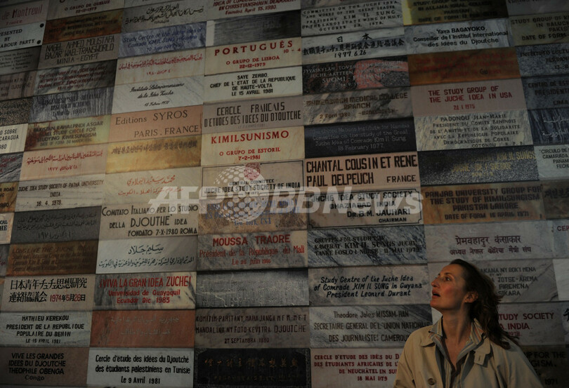 【5月19日 AFP】オーストリア・ウィーン(Vienna)の博物館で18日、北朝鮮の美術品などを紹介する特別展「金日成主席にささげる花(Flowers of Kim Il Sung)」が開幕した。展示品の中には、金正日(Kim Jong Il)総書記や故金日成主席の肖像画16点などが含まれているが、博物館関係者によると、こうした肖像画が北朝鮮国外で公開されるのは初めてだという。9月5日までの開催。(c)AFP/JOE KLAMAR