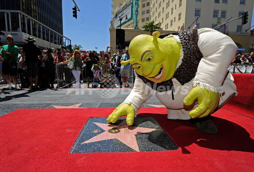 【5月21日 AFP】(写真追加)米アニメ映画「シュレック(Shrek)」シリーズのキャラクター、シュレックがハリウッドの殿堂「ウォーク・オブ・フェーム(Hollywood Walk of Fame)」入りを果たし、米カリフォルニア(California)州ハリウッド(Hollywood)で20日、記念式典が開催された。(c)AFP