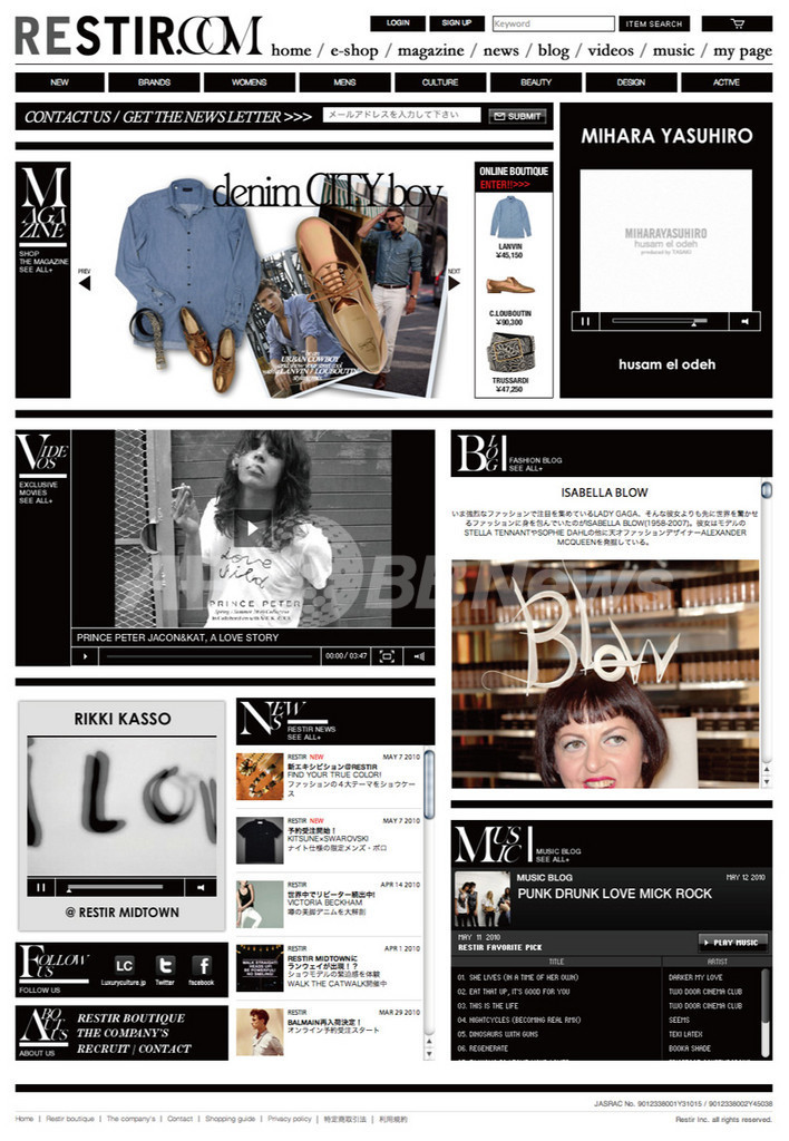 「RESTIR.COM」は、4月より一部の商品ページにモデル着用のオリジナル映像を連動するなど、より視覚に訴えるサイト展開に力を入れている。(c)MODE PRESS
