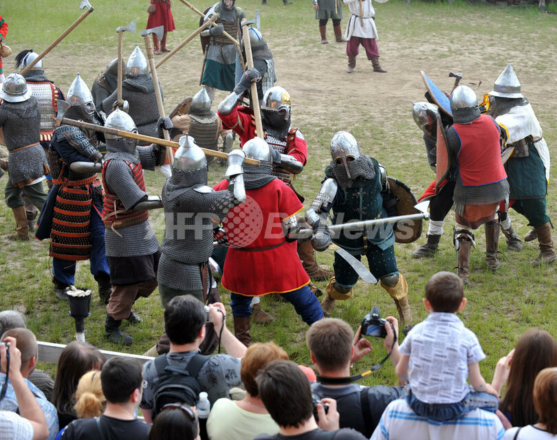 ニュース ライフ 13世紀のよろいで中世国家の戦闘シーン再現、ウクライナ 2010年5月24日 16:49 発信地:キエフ/ウクライナ [ ロシア・CIS ウクライナ ] このニュースをシェア ‹ › ❮ 14/15 ❯ ウクライナの首都キエフ(Kiev)近郊で23日、中世国家「キエフ大公国(Kievan Rus、キエフ・ルーシ)」をテーマにした国際フェスティバルが開かれた。キエフ大公国は880年ごろから13世紀半ばごろに存在した国家。写真は、13世紀のよろいをつけ、戦闘シーンを演じる人たち(2010年5月23日撮影)。(c)AFP/SERGEI SUPINSKY 画像作成中 ! 【5月24日 AFP】ウクライナの首都キエフ(Kiev)近郊で23日、中世国家「キエフ大公国(Kievan Rus、キエフ・ルーシ)」をテーマにした国際フェスティバルが開かれた。キエフ大公国は880年ごろから13世紀半ばごろに存在した国家。(c)AFP ライフ 一覧へ> メディア・報道関係・法人の方向け 写真・動画 購入のお問合せ>