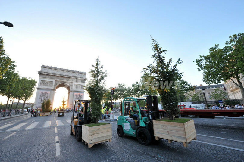 【5月24日 AFP】フランス・パリ(Paris)のシャンゼリゼ通り(Champs-Elysees) が23日、「巨大農園」に姿を変えた。24日まで開催される「ネイチャー・キャピタル(Nature Capital)」と呼ばれる農業イベントで、凱旋門(Arc de Triomphe)からコンコルド広場(Place de la Concorde)に向かう1.2キロが樹木や草花のほか、100種類以上の穀物、果物、野菜などで埋め尽くされた。牛や豚、山羊、羊などの家畜も姿を見せ、訪れた80万人の人たちの目を楽しませた。(c)AFP