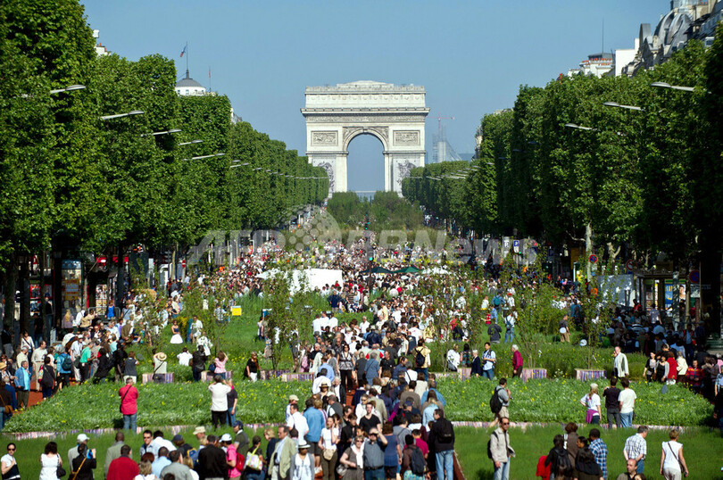 【5月24日 AFP】フランス・パリ(Paris)のシャンゼリゼ通り(Champs-Elysees) が23日、「巨大農園」に姿を変えた。24日まで開催される「ネイチャー・キャピタル(Nature Capital)」と呼ばれる農業イベントで、凱旋門(Arc de Triomphe)からコンコルド広場(Place de la Concorde)に向かう1.2キロが樹木や草花のほか、100種類以上の穀物、果物、野菜などで埋め尽くされた。牛や豚、山羊、羊などの家畜も姿を見せ、訪れた80万人の人たちの目を楽しませた。(c)AFP