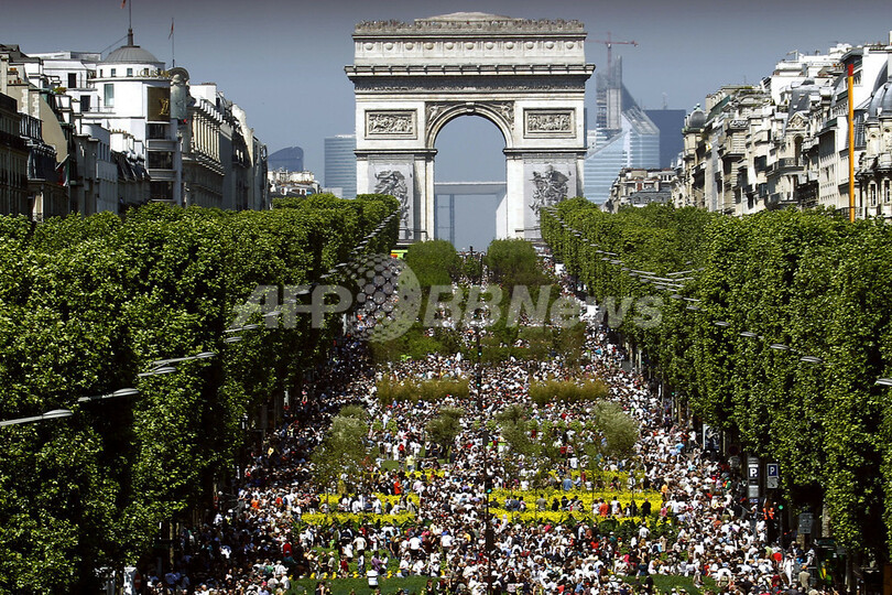 【5月24日 AFP】フランス・パリ(Paris)のシャンゼリゼ通り(Champs-Elysees) が23日、「巨大農園」に姿を変えた。24日まで開催される「ネイチャー・キャピタル(Nature Capital)」と呼ばれる農業イベントで、凱旋門(Arc de Triomphe)からコンコルド広場(Place de la Concorde)に向かう1.2キロが樹木や草花のほか、100種類以上の穀物、果物、野菜などで埋め尽くされた。牛や豚、山羊、羊などの家畜も姿を見せ、訪れた80万人の人たちの目を楽しませた。(c)AFP