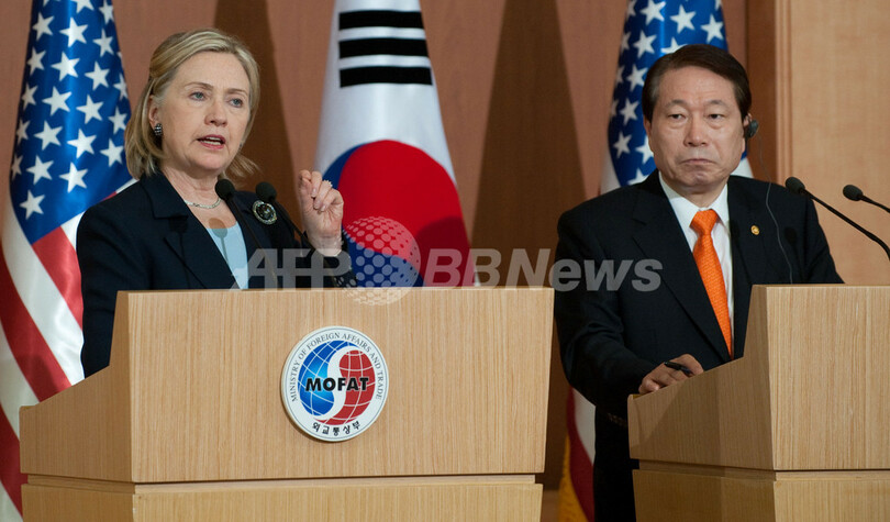 朝鮮半島の緊張が高まるなかソウル(Seoul)を訪れたクリントン長官は柳明桓(ユ・ミョンファン、Yu Myung-hwan)外交通商相とソウル(Seoul)で行った共同会見で、数十年間同盟関係にある韓国の安全保障に関する米国の支援をかたく約束して、どうすれば北朝鮮に責任を果たさせることができるか米国も検討中だと述べた。