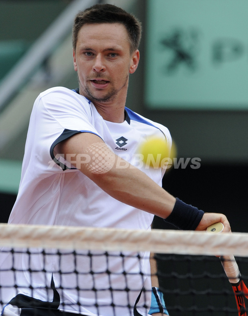 ツォンガの途中棄権により、8強入りを果したユーズニー(Mikhail Youzhny、ロシア)は、準々決勝でベルディハと対戦する。(c)AFP