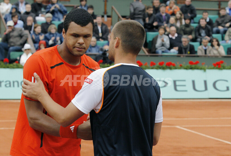 ツォンガの途中棄権により、8強入りを果したユーズニー(Mikhail Youzhny、ロシア)は、準々決勝でベルディハと対戦する。(c)AFP