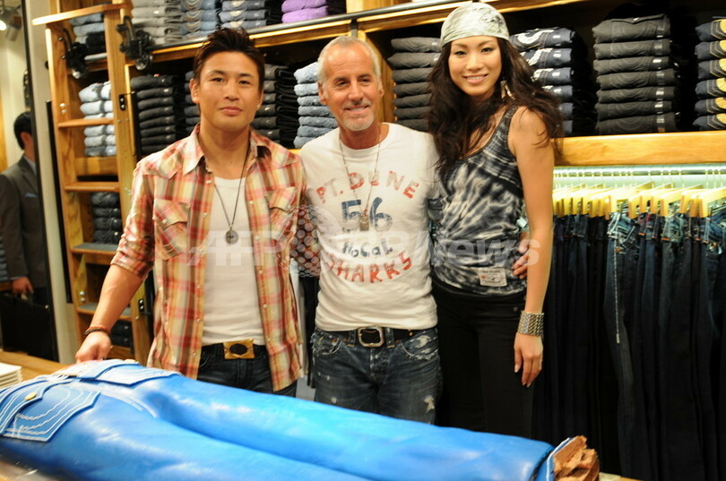 オープニングを祝して来日したルベルCEOとともにテープカットを行ったのは、魔裟斗と2010 ミス・ユ二バース・ジャパンの板井麻衣子(Maiko Itai)。そのほか、道端カレン(Karen Michibata)とジェシカ姉妹、すみれ(Sumire)、ソノミ(SONOMI)ら華やかなモデルたちのほかに、ファッションデザイナーのドン小西やDJのマドモアゼル・ユリア(MADEMOISELLE YULIA)らが出席し、ジーンズをモチーフにした大きなケーキやドリンクを楽しみつつショップのオープンを祝福した。(c)MODE PRESS