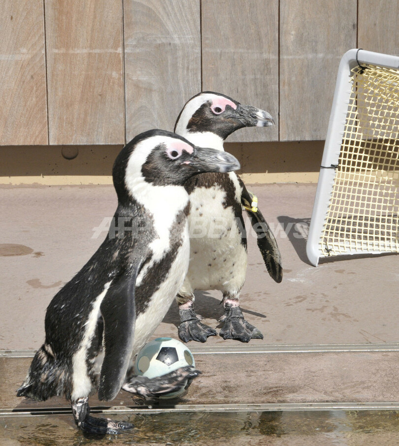 一足先に「サッカーの祭典」 ペンギンや魚がゴール!八景島シーパラダイス