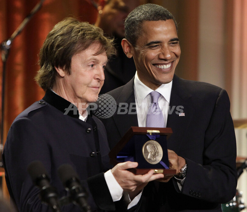 マッカートニー氏は2日、米ホワイトハウス(White House)で開かれた授賞式に出席し、バラク・オバマ(Barack Obama)米大統領から同賞のメダルを授与された。