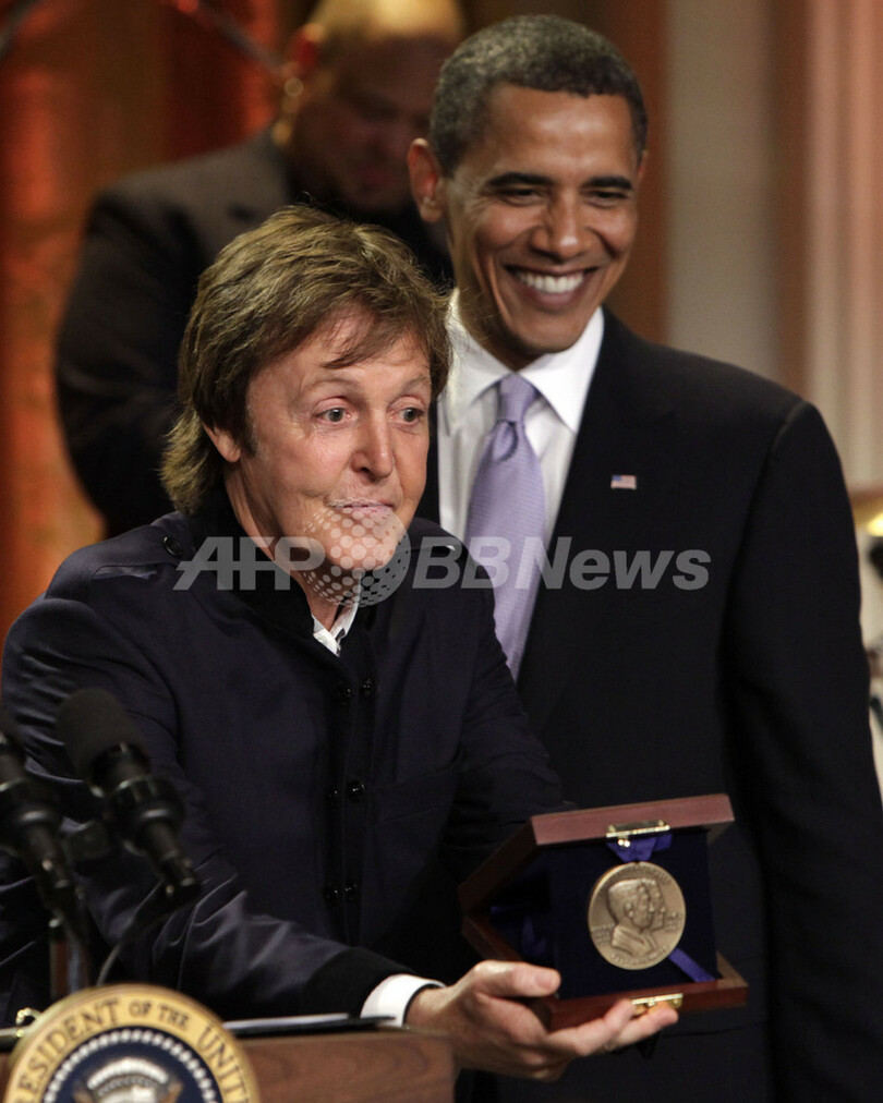マッカートニー氏は2日、米ホワイトハウス(White House)で開かれた授賞式に出席し、バラク・オバマ(Barack Obama)米大統領から同賞のメダルを授与された。