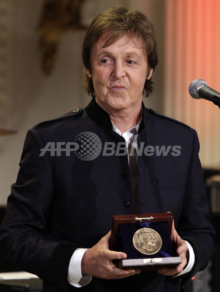 マッカートニー氏は2日、米ホワイトハウス(White House)で開かれた授賞式に出席し、バラク・オバマ(Barack Obama)米大統領から同賞のメダルを授与された。