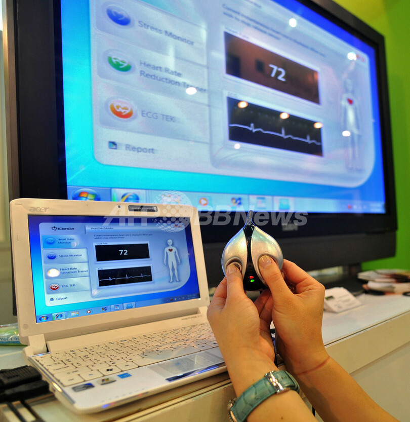 【6月3日 AFP】台湾の台北(Taipei)で開催中のアジア最大のコンピューター見本市「2010台北国際コンピューター見本市(Computex Taipei 2010)」に、ストレスレベルや気分の上下が分かる機器が出展されている。