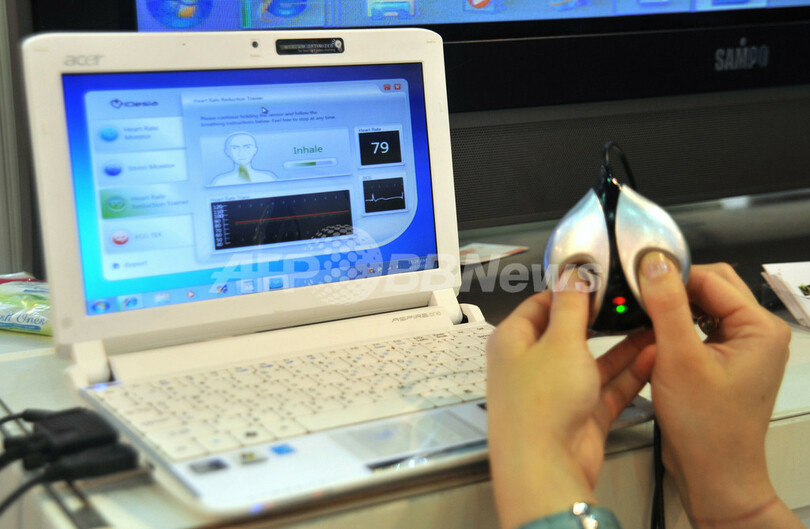 【6月3日 AFP】台湾の台北(Taipei)で開催中のアジア最大のコンピューター見本市「2010台北国際コンピューター見本市(Computex Taipei 2010)」に、ストレスレベルや気分の上下が分かる機器が出展されている。