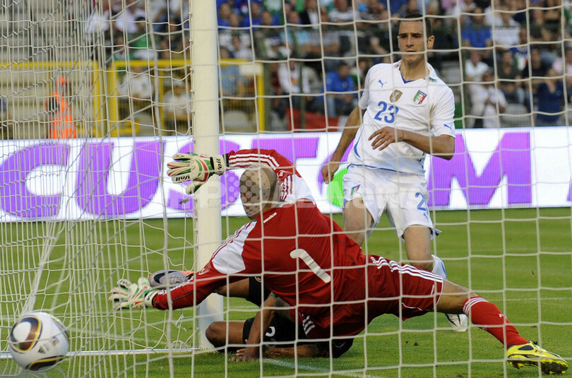 【6月4日 AFP】サッカー国際親善試合、イタリア対メキシコ。試合はメキシコが2006年W杯ドイツ大会の王者イタリアを2-1で下した。