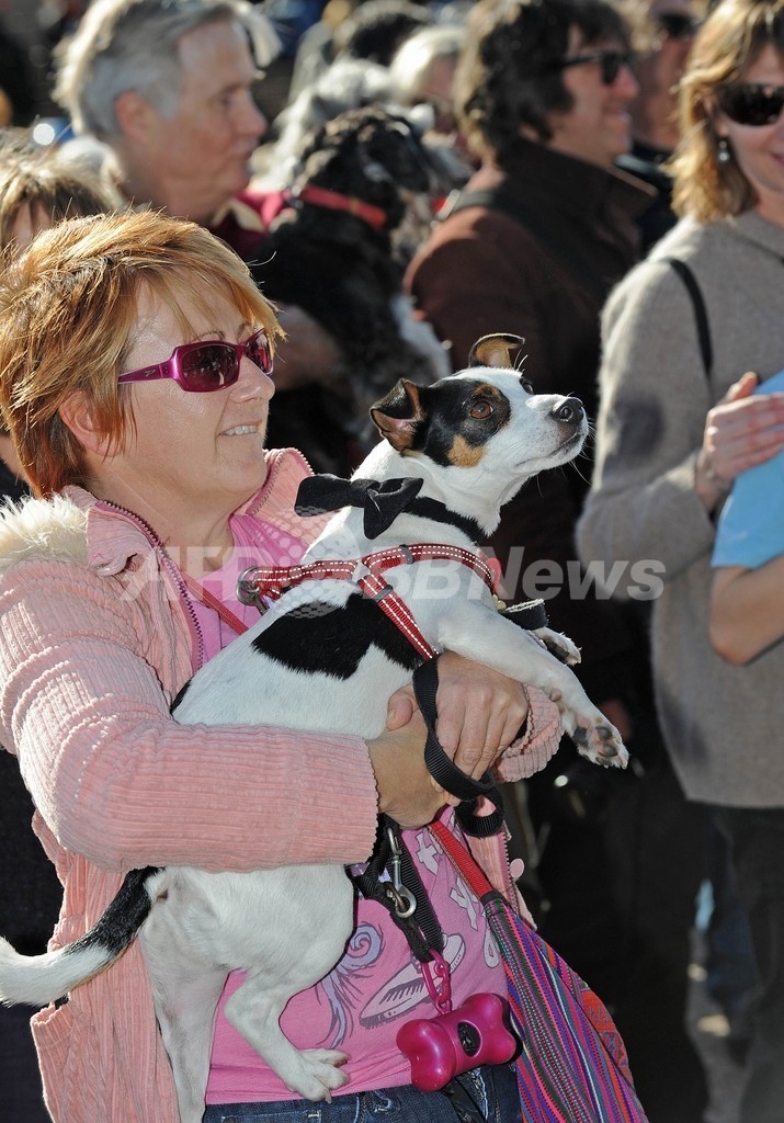 あるシープドッグがオドオドしたプードルの足首に勢い余ってかみついたり、荒々しいうなり声の応酬も所々で発生したものの、アンダーソンは犬たちの全体的な礼儀正しさを称え、イベントについて「わたしの人生のハイライト」と呼んだ。(c)AFP/Amy Coopes