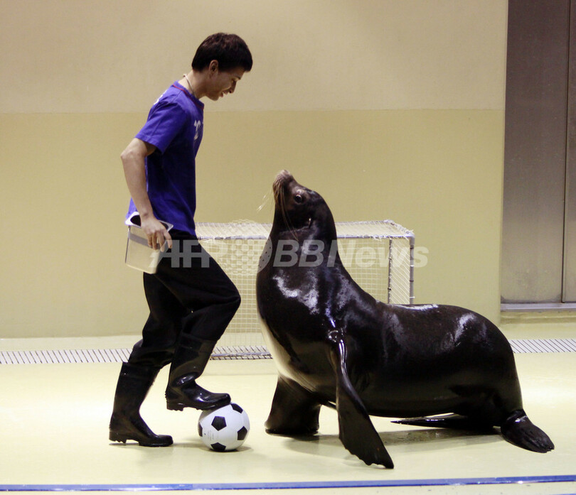 ニュース ライフ 日本チームを応援するアシカのバロン君 2010年6月9日 10:05 発信地:東京 [ アジア・オセアニア 東京 ] このニュースをシェア ‹ › ❮ 3/7 ❯ 都内のエプソン品川アクアスタジアム(Epson Shinagawa Aqua Stadium)では、アシカのバロン(Baron)君が2010年サッカーW杯南アフリカ大会(2010 World Cup)に出場する日本代表を応援するため、サッカーボールを使った新しいパフォーマンスを披露している(2010年6月8日撮影)。(c)AFP/Yoshikazu TSUNO 画像作成中 ! 【6月9日 AFP】都内のエプソン品川アクアスタジアム(Epson Shinagawa Aqua Stadium)では、アシカのバロン(Baron)君が2010年サッカーW杯南アフリカ大会(2010 World Cup)に出場する日本代表を応援するため、サッカーボールを使った新しいパフォーマンスを披露している。(c)AFP ライフ 一覧へ> メディア・報道関係・法人の方向け 写真・動画 購入のお問合せ>