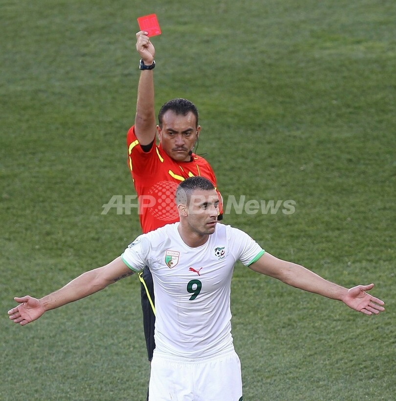 アルジェリアは後半途中から出場したアブデルカデル・グヘザル(Abdelkader Ghezzal)が28分に退場となり、数的不利となった。(c)AFP