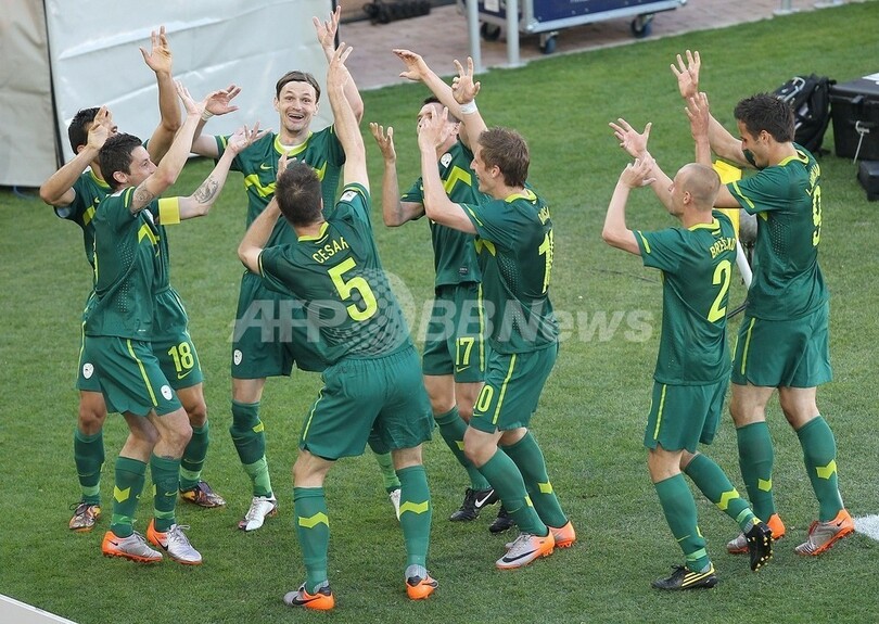 【6月13日 AFP】(写真追加)2010年サッカーW杯南アフリカ大会(2010 World Cup)1次リーグC組、アルジェリア対スロベニア。スロベニアは1-0で勝利し、W杯初勝利を挙げた。初出場した2002年の日韓大会は、1次リーグ3戦全敗だった。