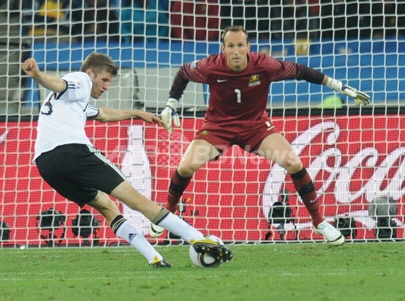 【6月14日 AFP】(写真追加)2010年サッカーW杯南アフリカ大会(2010 World Cup)1次リーグD組、ドイツ対オーストラリア。試合はドイツが4-0で快勝した。