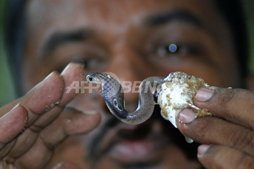 【6月14日 AFP】インド・ブバネシュワル(Bhubaneswar)郊外で11日、インドコブラの赤ちゃんが卵からかえる瞬間が撮影された。毒ヘビのインドコブラはインド、パキスタン、バングラデシュ、スリランカなど南アジアに分布する。(c)AFP
