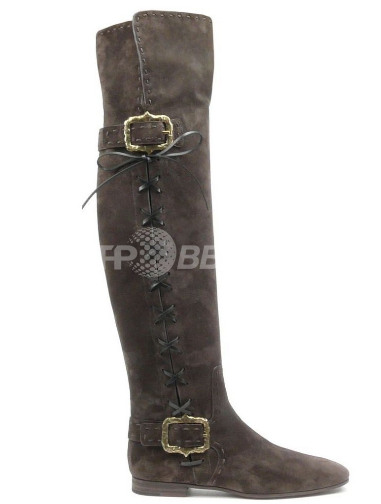 ブーツはベルトをとめるゴールドのバックルや、編み上げの皮ひもがデザインのアクセントになったデザイン。映画の舞台となった中世イングランドの衣装に、タイムレスな魅力を添えている。
