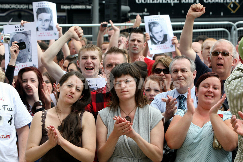 キャメロン首相の演説はロンドンデリー市内の巨大スクリーンで生中継され、謝罪を聴いた遺族や支援者たちは歓声をあげた。