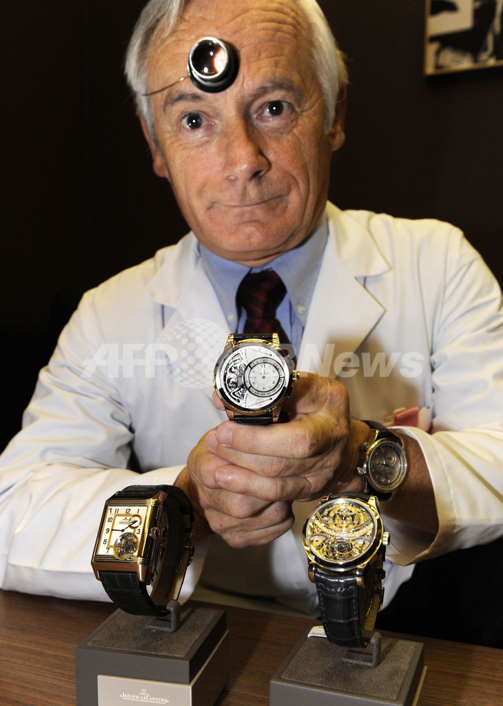 【6月16日 AFP】日本橋三越(Mitsukoshi)本店は16日、スイスの高級時計ブランド「ジャガー・ルクルト(Jager-LeCoultre)」の腕時計3点セット「ハイブリス・メカニカ 55(Hybris Mechanica 55)」の限定発売を開始した。時計は「ハイブリス・メカニカ・グラン・ソヌリ(Grands Sonnerie)」「ハイブリス・メカニカ・ジャイロトゥールビヨン(Gyrotourbillon)」「ハイブリス・メカニカ・トリプティック(Triptyque)」。世界限定30セットの1つで、日本での展示販売は日本橋三越本店のみ。専用金庫もついて価格は2億7300万円。(c)AFP