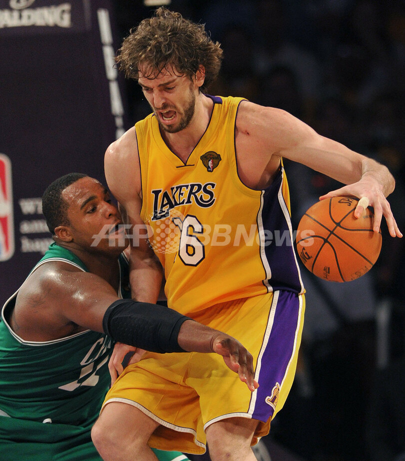 【6月16日 AFP】09-10NBAファイナル、ロサンゼルス・レイカーズ(Los Angeles Lakers)対ボストン・セルティックス(Boston Celtics)第6戦。レイカーズは89-67でセルティックスを下して対戦成績を3勝3敗とし、決着を第7戦に持ち込んだ。