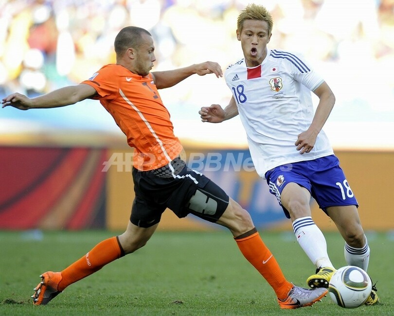 【6月19日 AFP】(記事更新、写真追加)2010年サッカーW杯南アフリカ大会(2010 World Cup)1次リーグE組、オランダ対日本。オランダが1-0で勝利し、2連勝で勝ち点を6に伸ばして首位に立った。