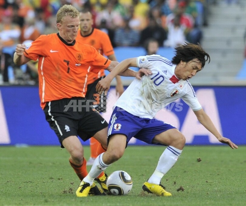 【6月19日 AFP】(記事更新、写真追加)2010年サッカーW杯南アフリカ大会(2010 World Cup)1次リーグE組、オランダ対日本。オランダが1-0で勝利し、2連勝で勝ち点を6に伸ばして首位に立った。