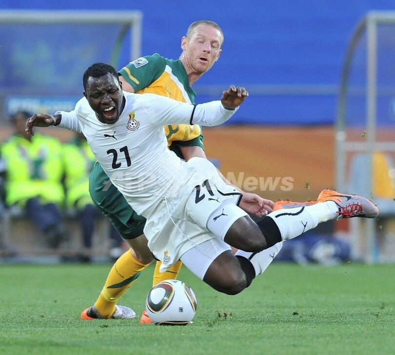 【6月20日 AFP】(写真追加)2010年サッカーW杯南アフリカ大会(2010 World Cup)1次リーグD組、ガーナ対オーストラリア。試合は1-1の引き分けに終わった。